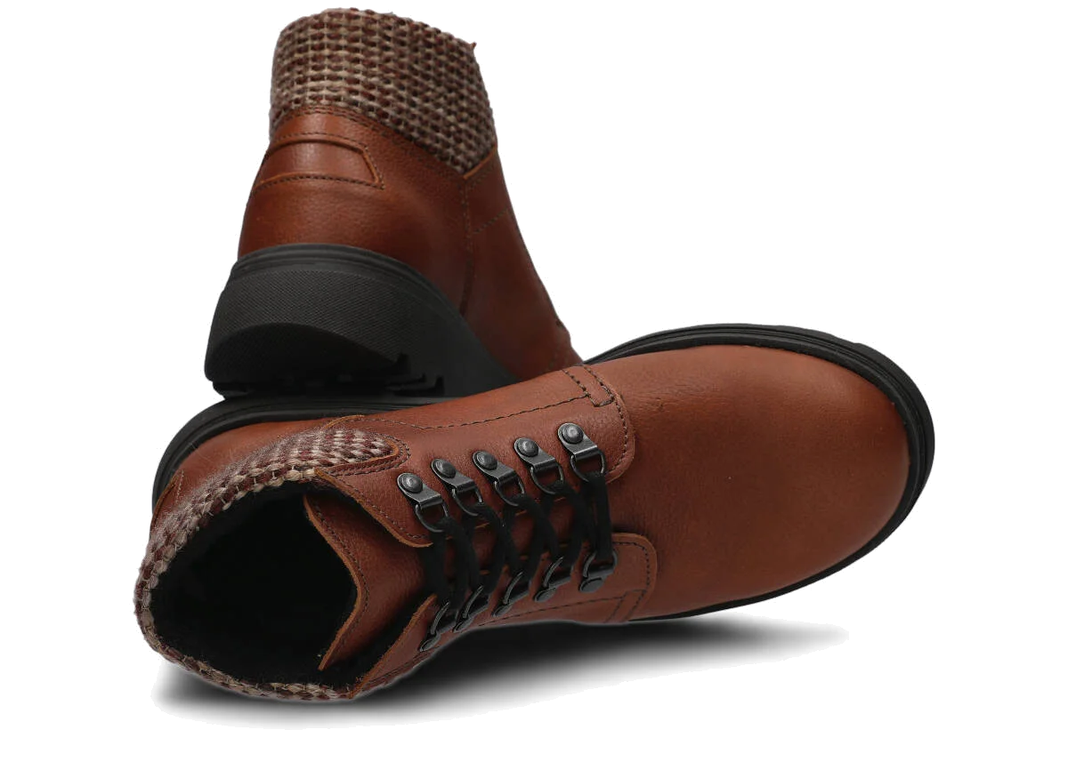 Follonica - hladká kůže, jemná. S károvaným vzorem. Lico lehce lakované, lesklé. Boty vyrobené z této kůže mají elegantní vzhled.