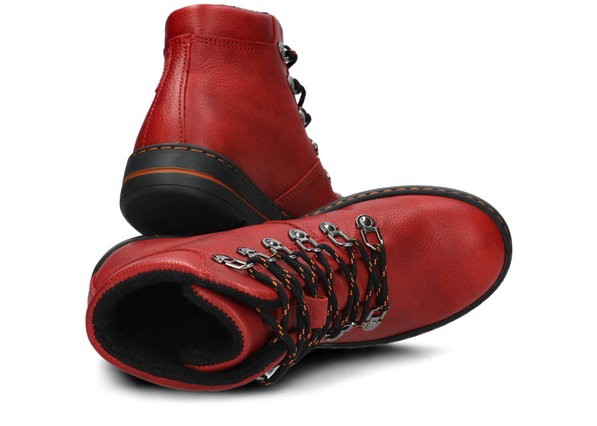 Nabízíme velmi efektní kožené šněrované boty model 281 v červená barvě, které se velmi dobře hodí k různým oblečením.