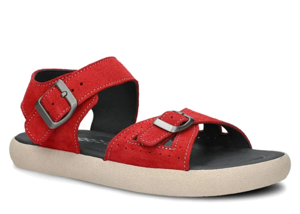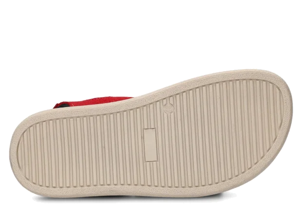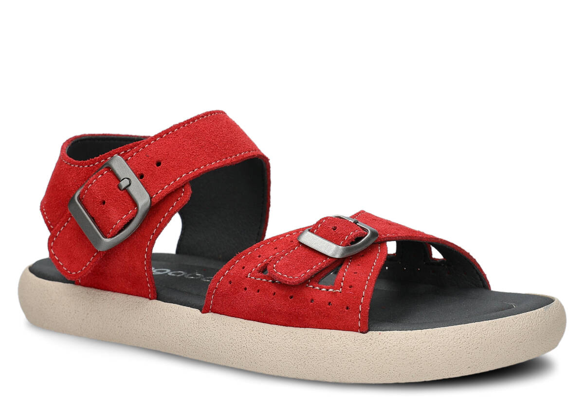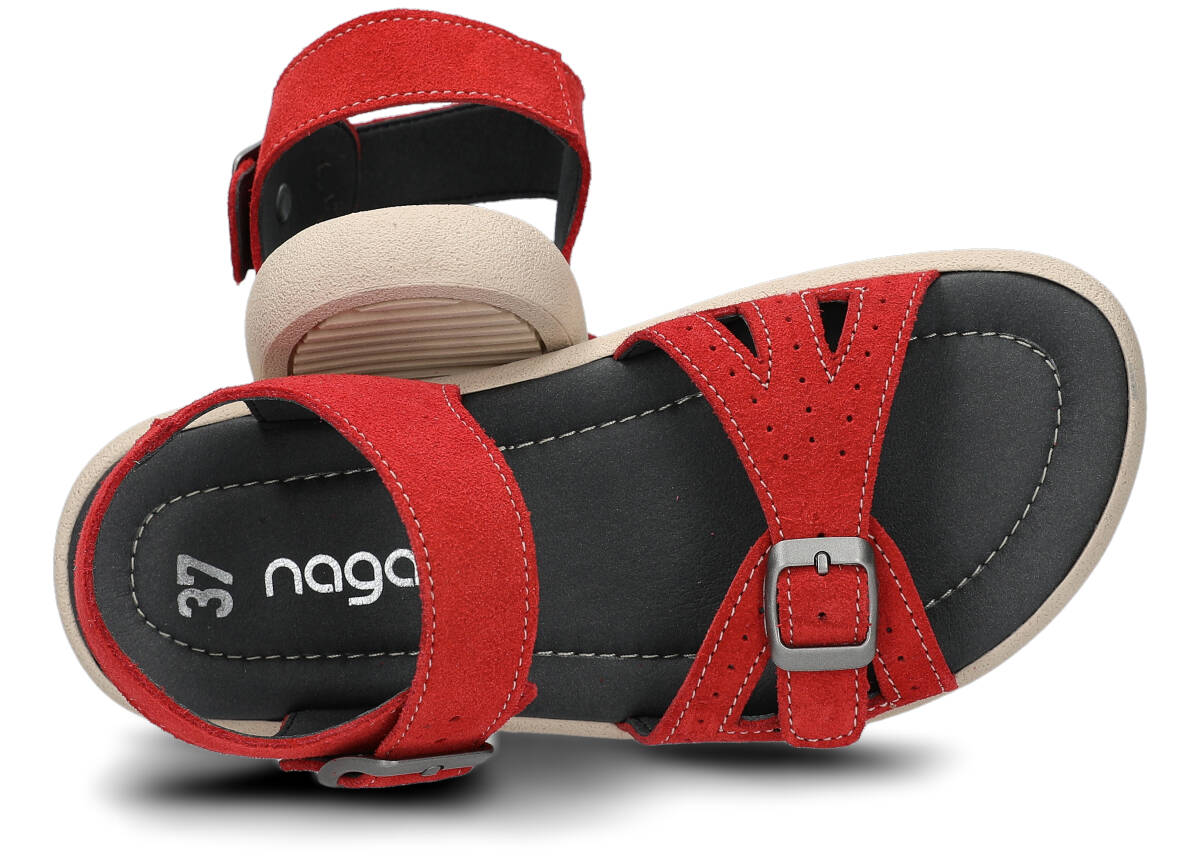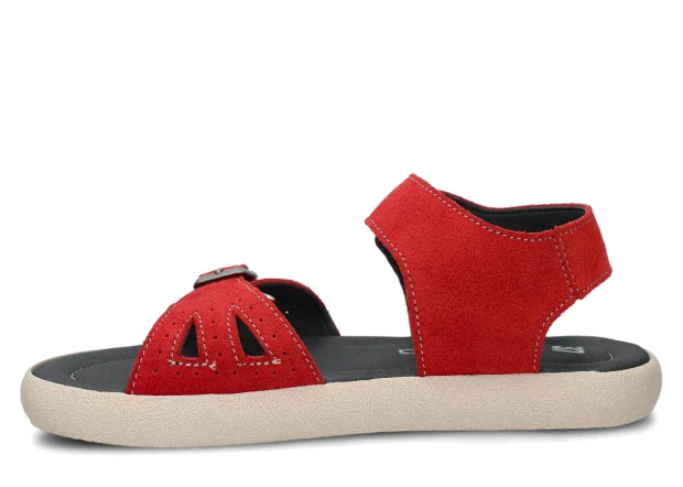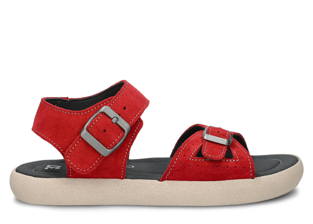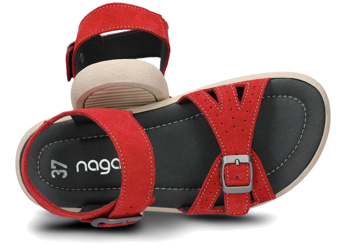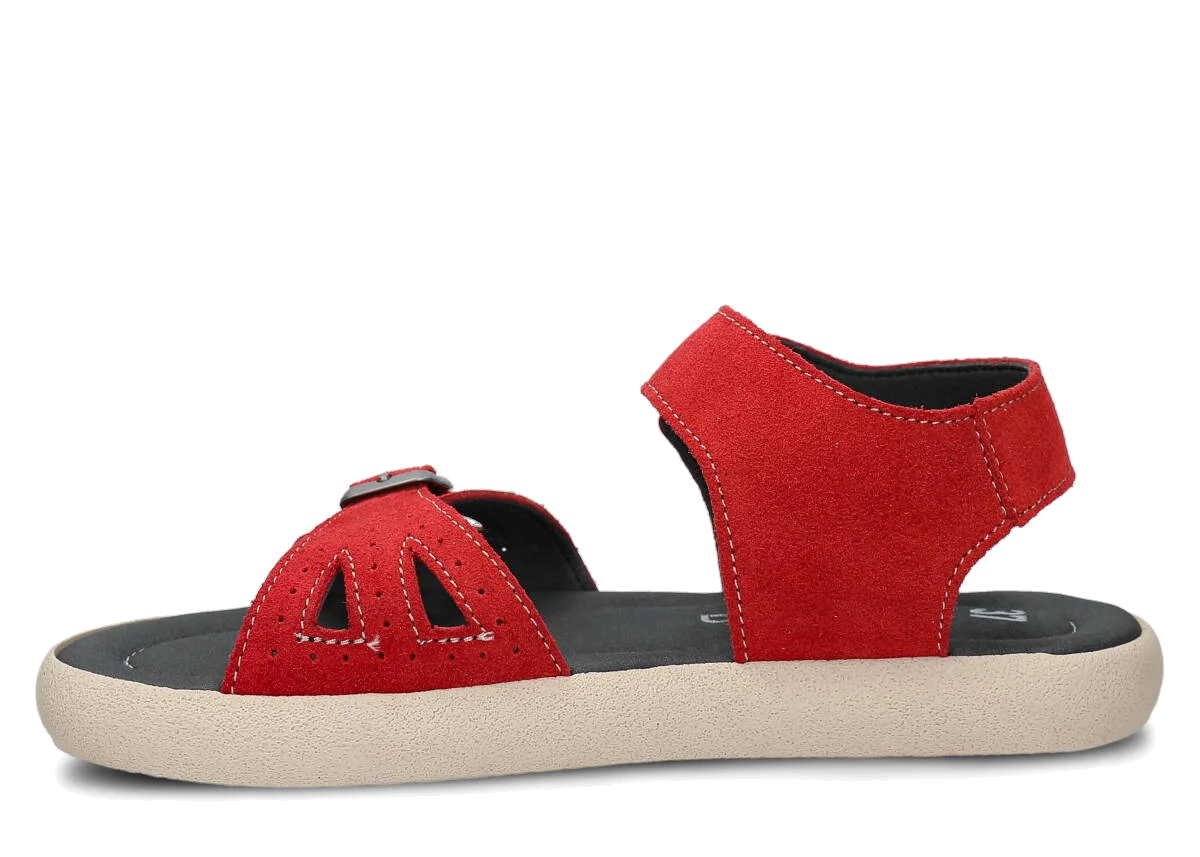 Tyto letní červená sandály, model 027, na výrobu kterých jsme použili kůži velur , jsou ideální pro horké letní počasí.