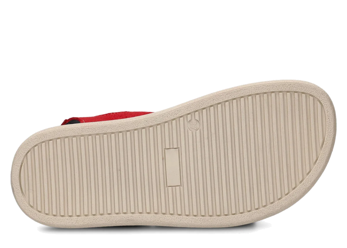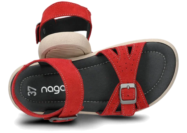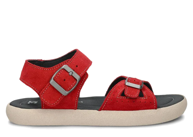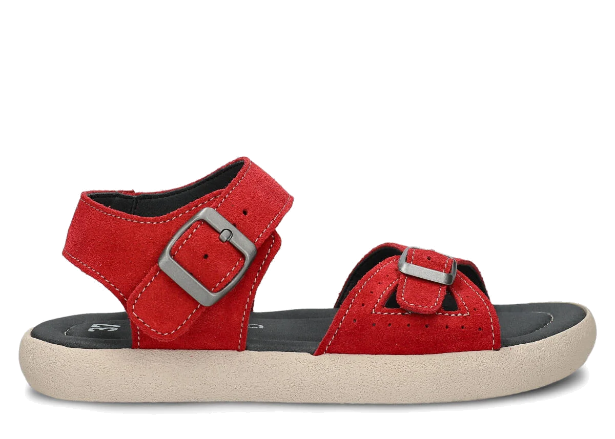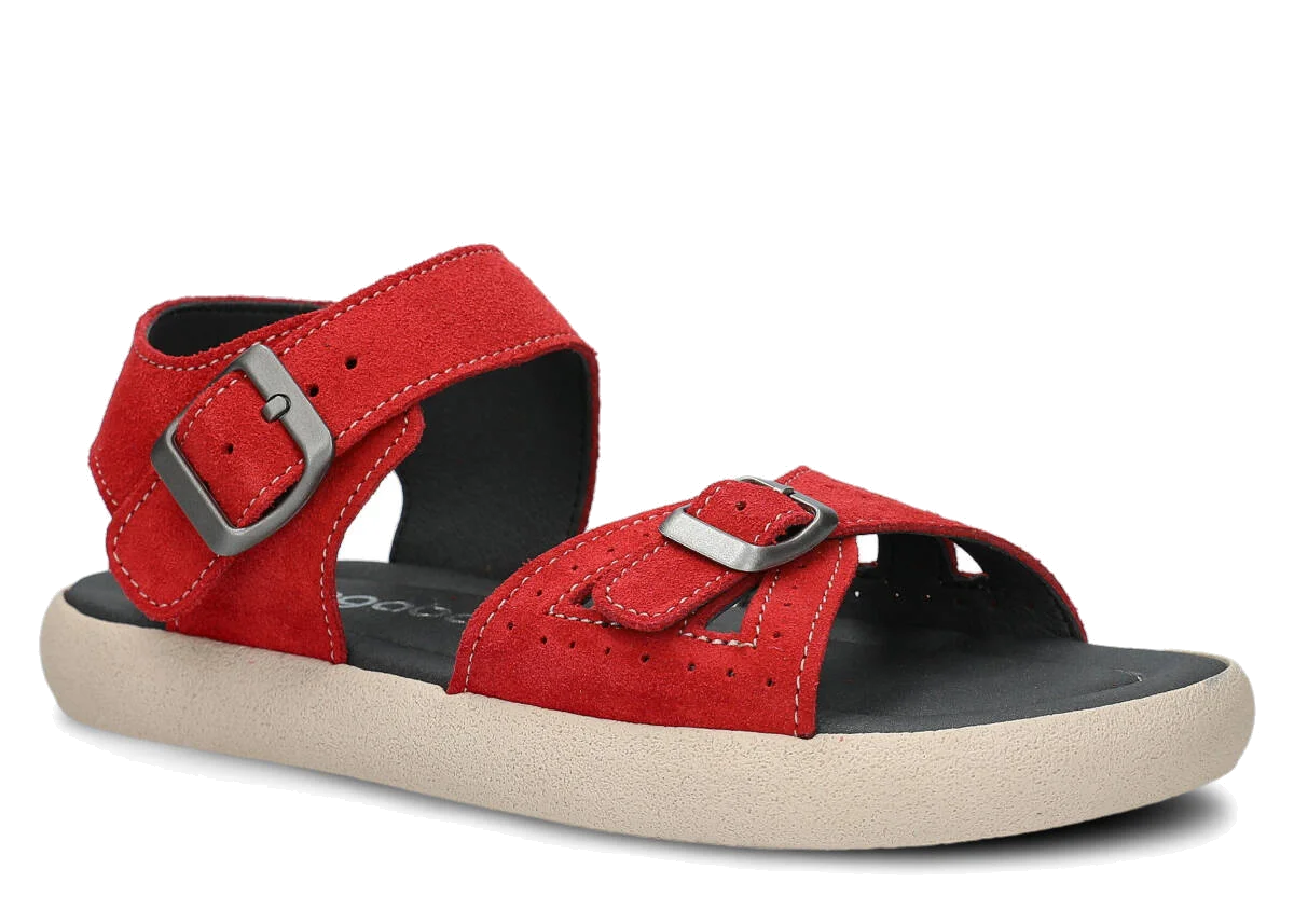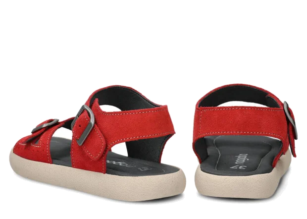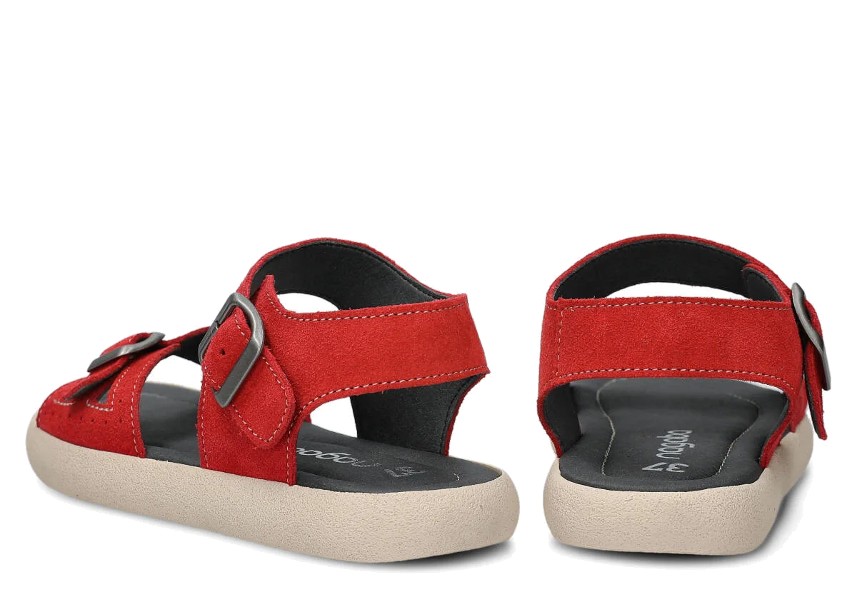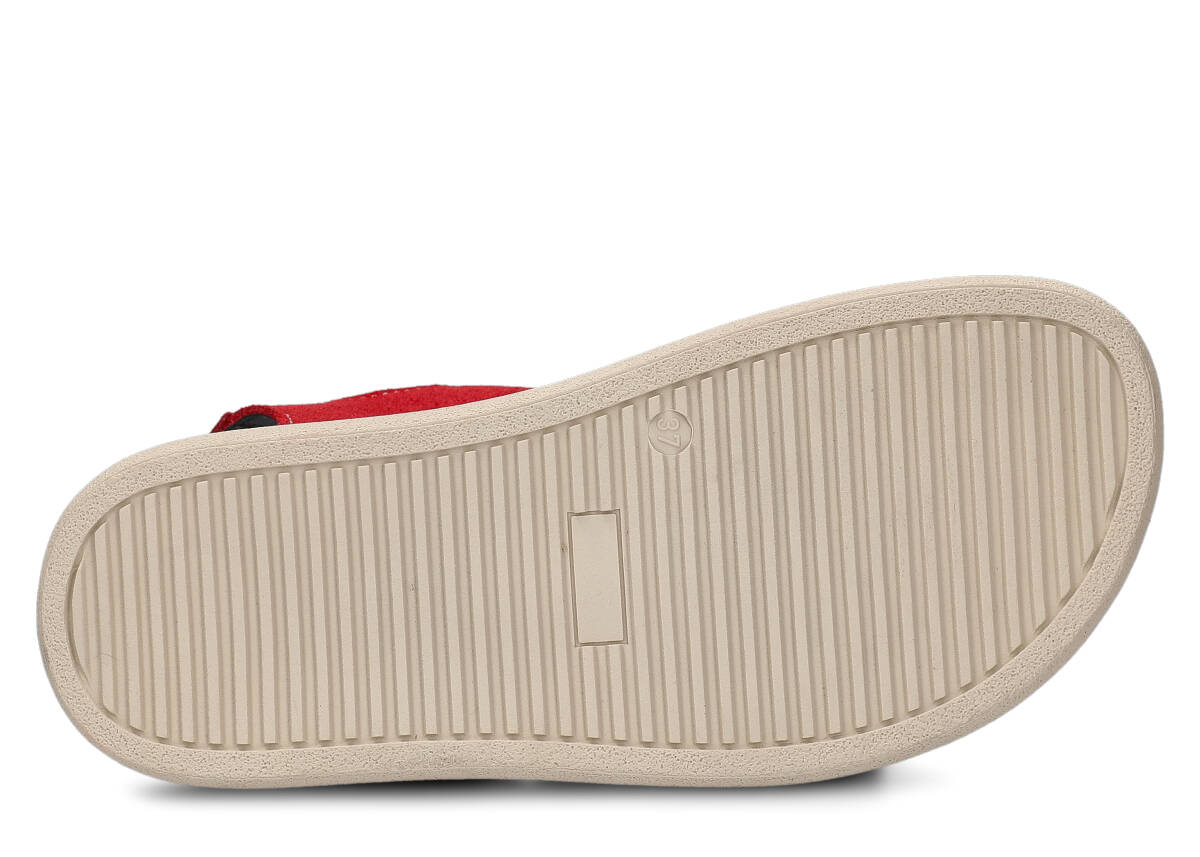 Tyto letní červená sandály, model 027, na výrobu kterých jsme použili kůži velur , jsou ideální pro horké letní počasí.