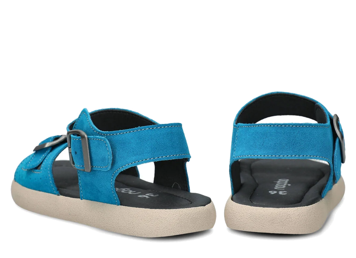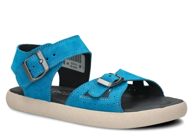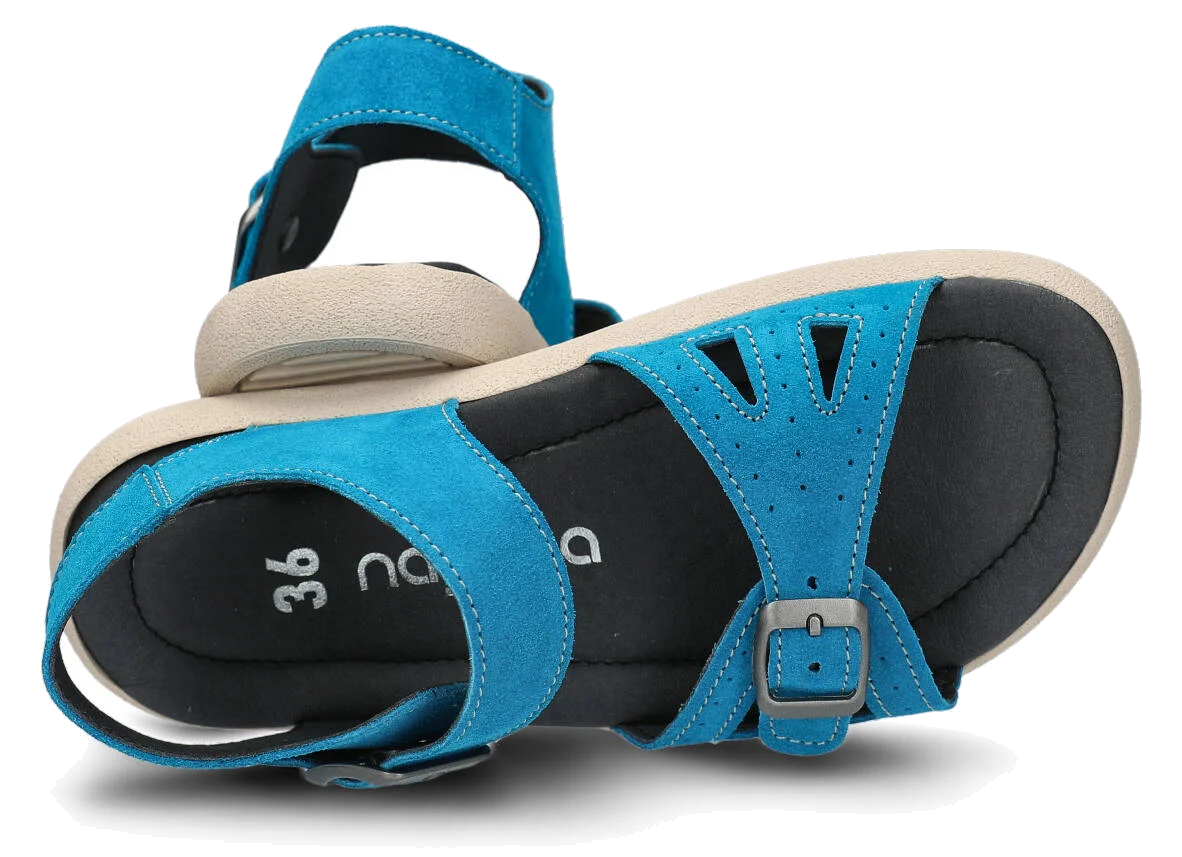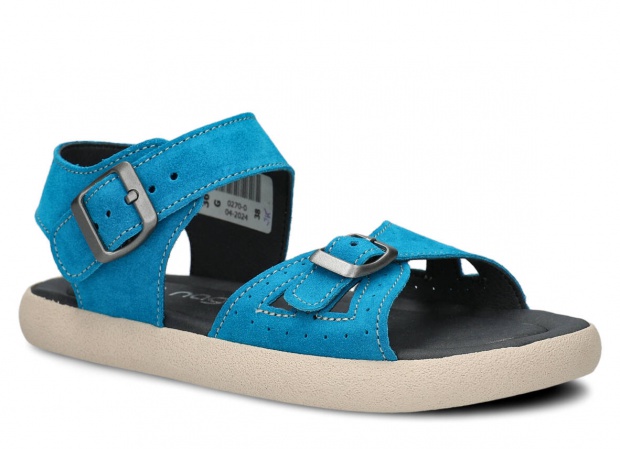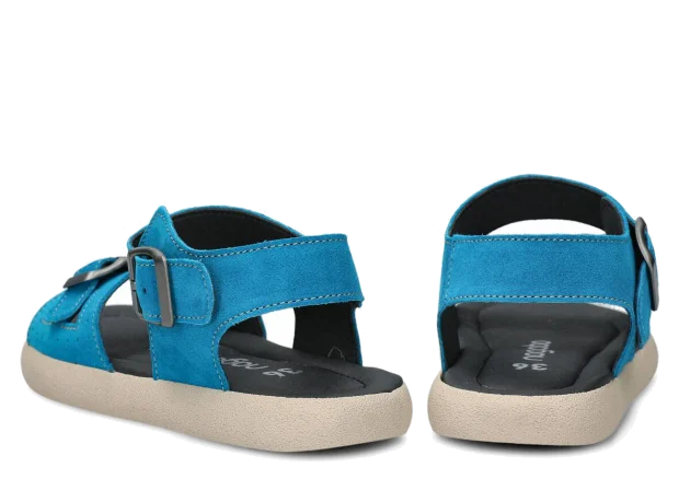 Tyto letní mořská modř sandály, model 027 , na výrobu kterých jsme použili kůži velur, jsou ideální pro horké letní počasí.