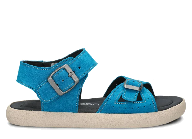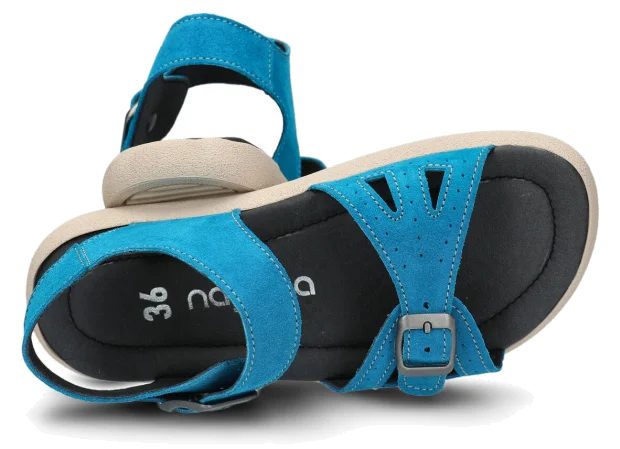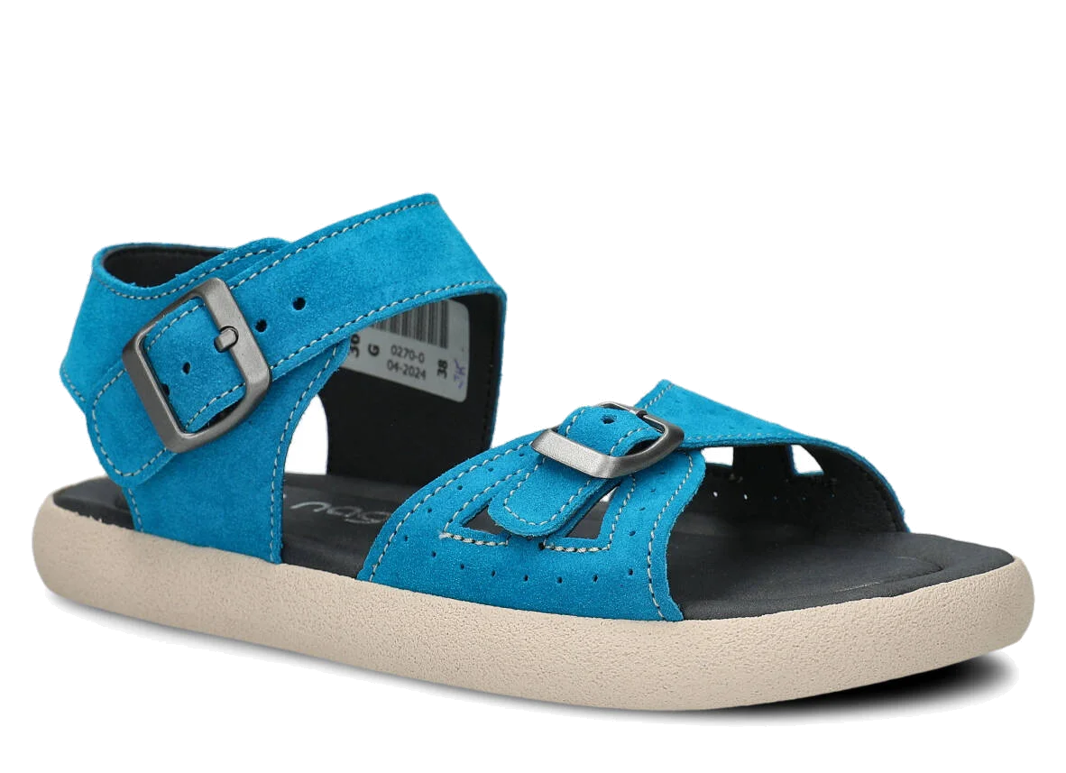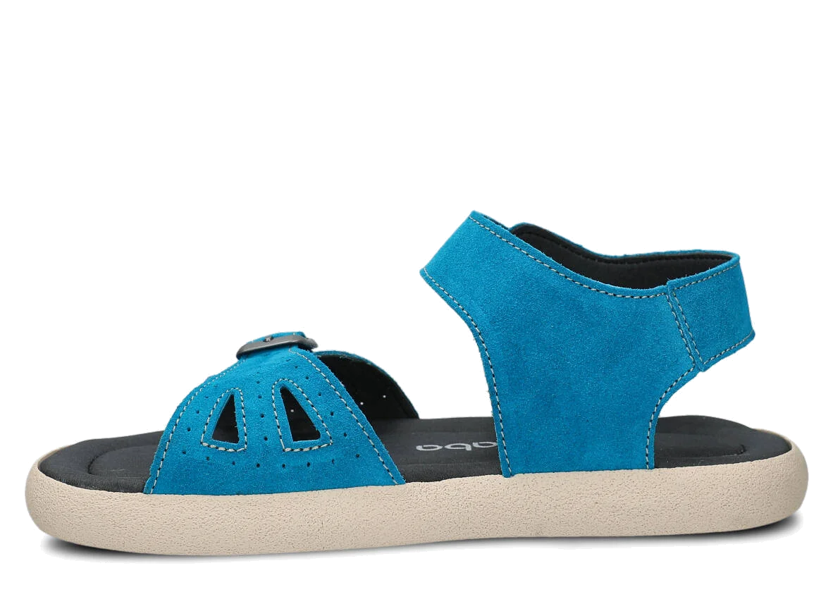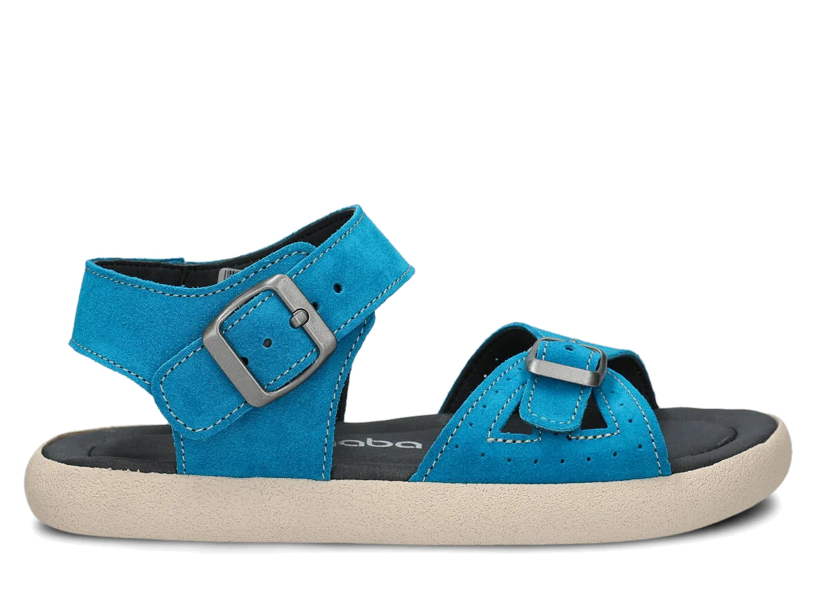 Tyto letní mořská modř sandály, model 027 , na výrobu kterých jsme použili kůži velur, jsou ideální pro horké letní počasí.