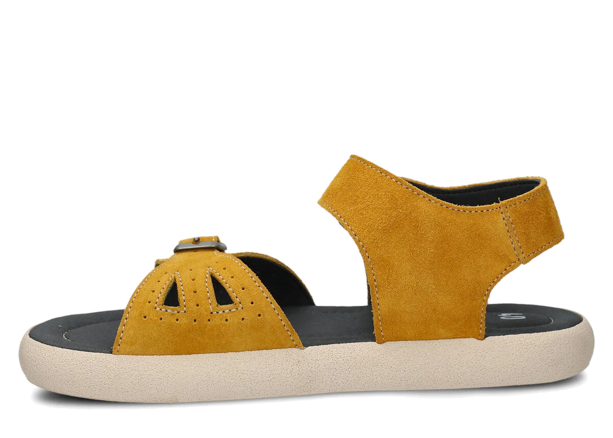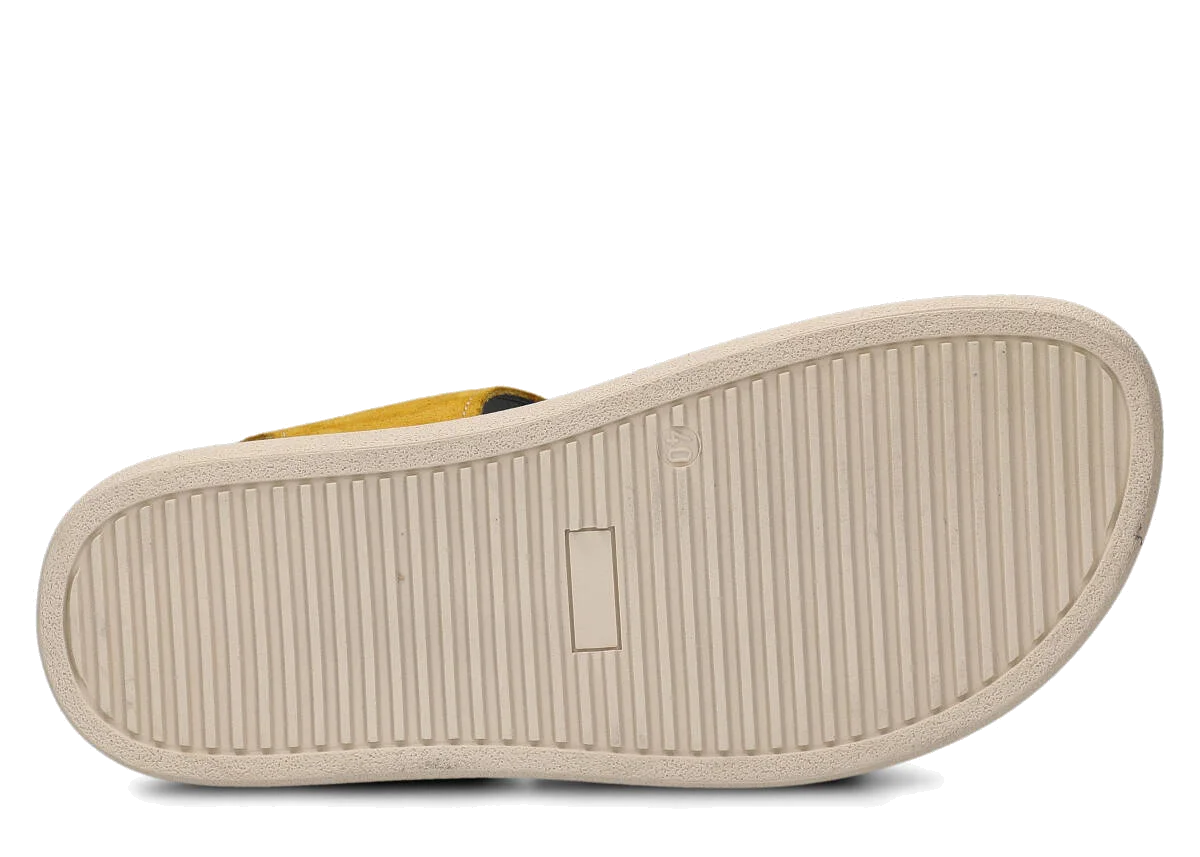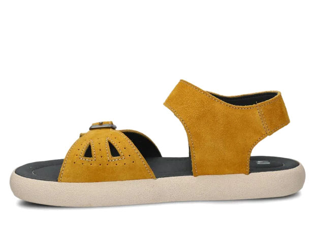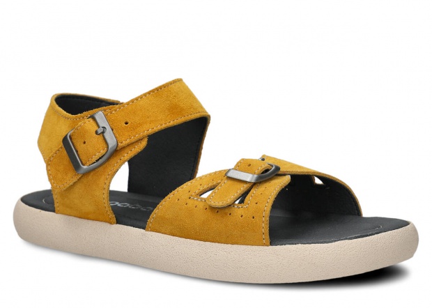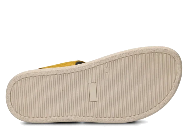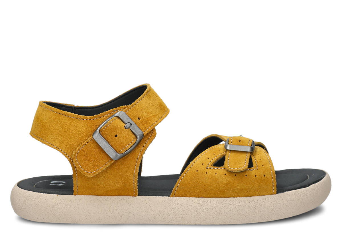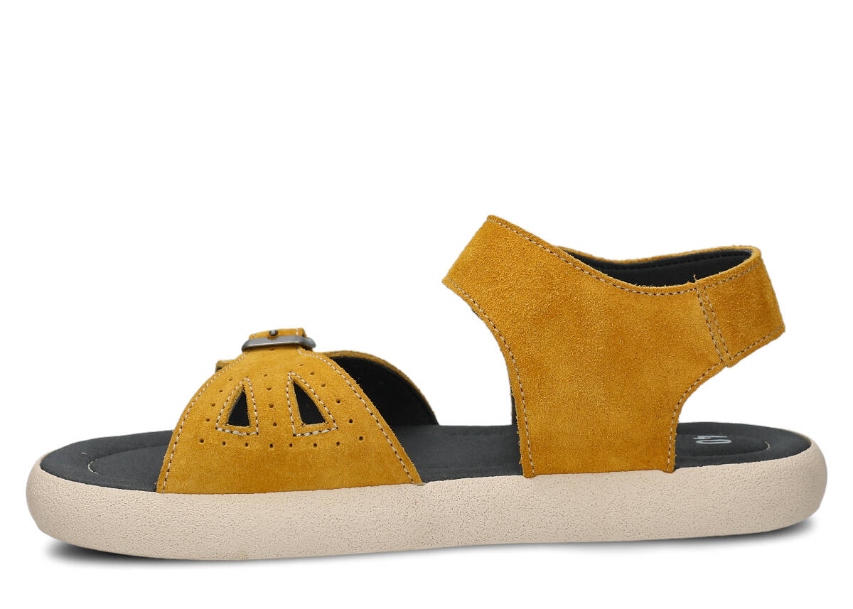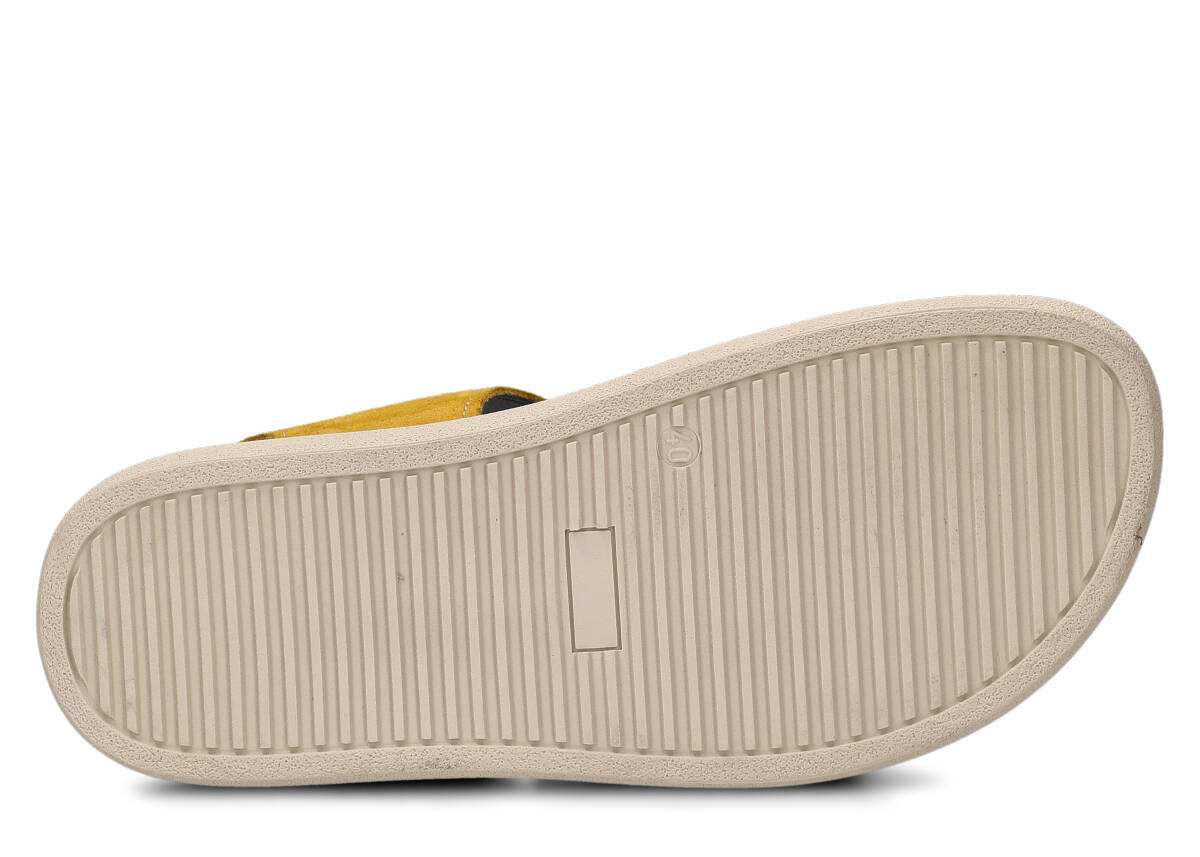 Tyto letní žlutá sandály, model 027 , na výrobu kterých jsme použili kůži velur, jsou ideální pro horké letní počasí.