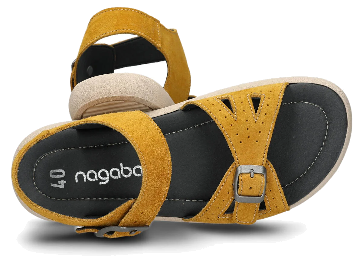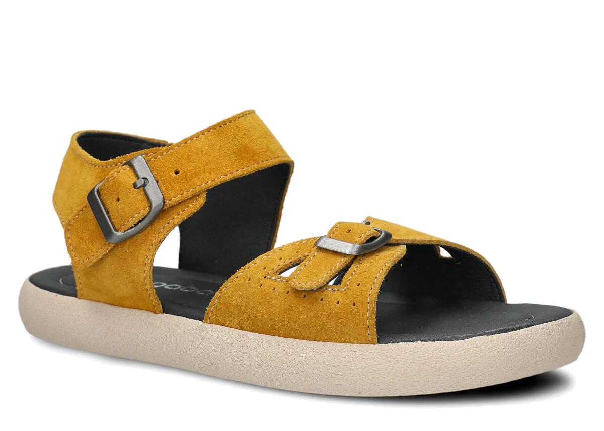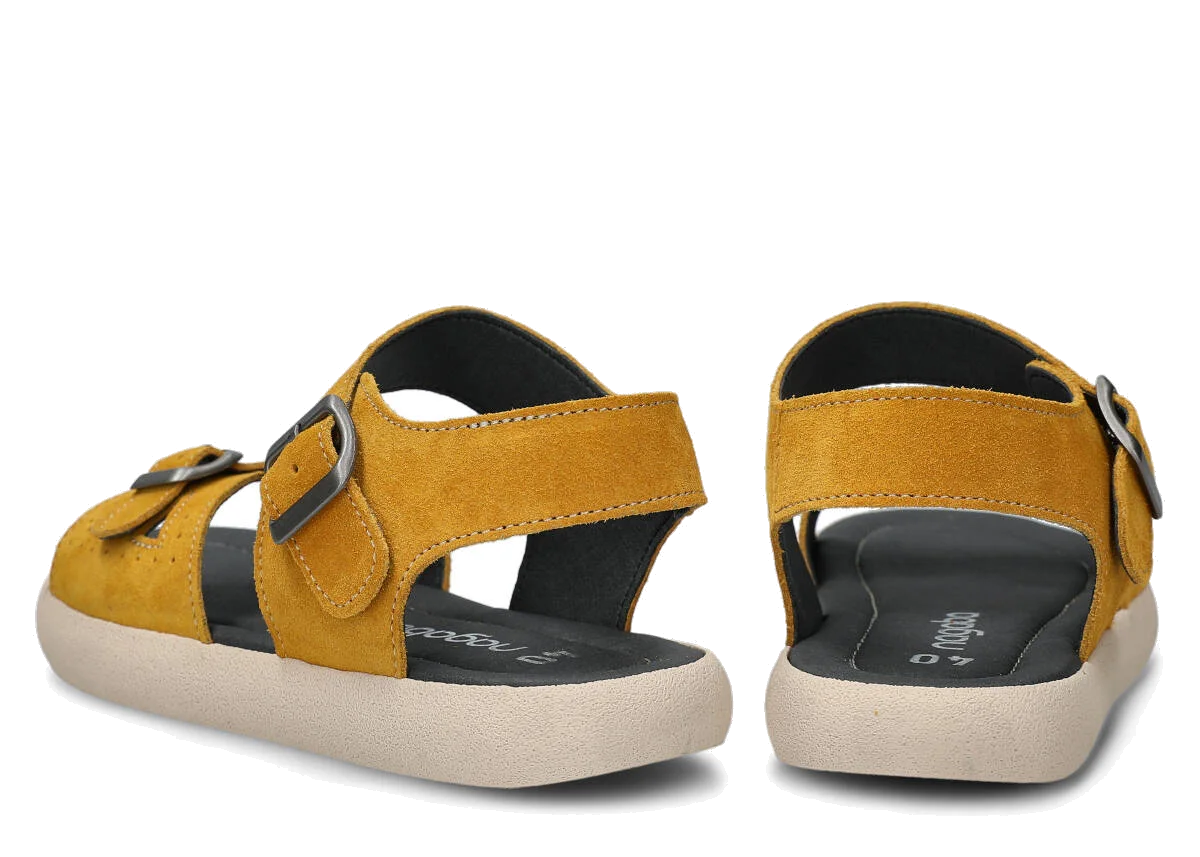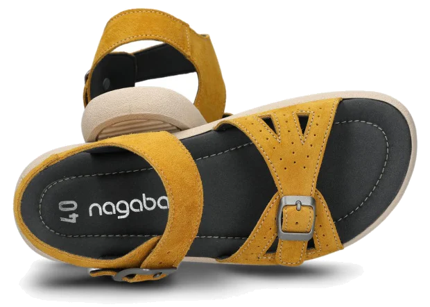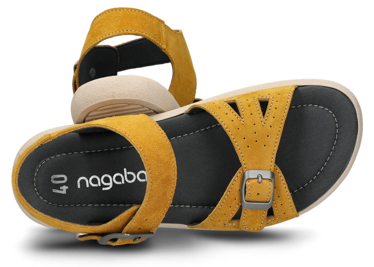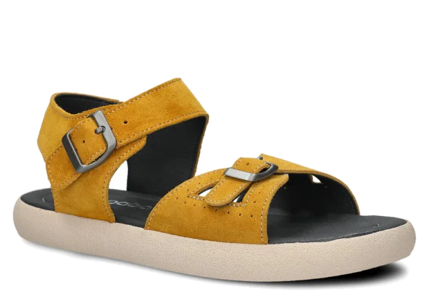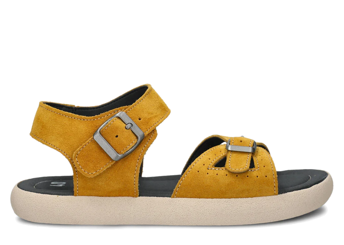 Tyto letní žlutá sandály, model 027 , na výrobu kterých jsme použili kůži velur, jsou ideální pro horké letní počasí.