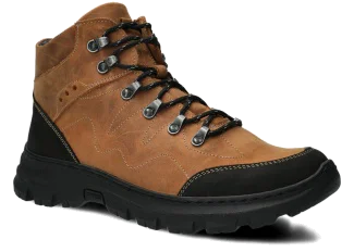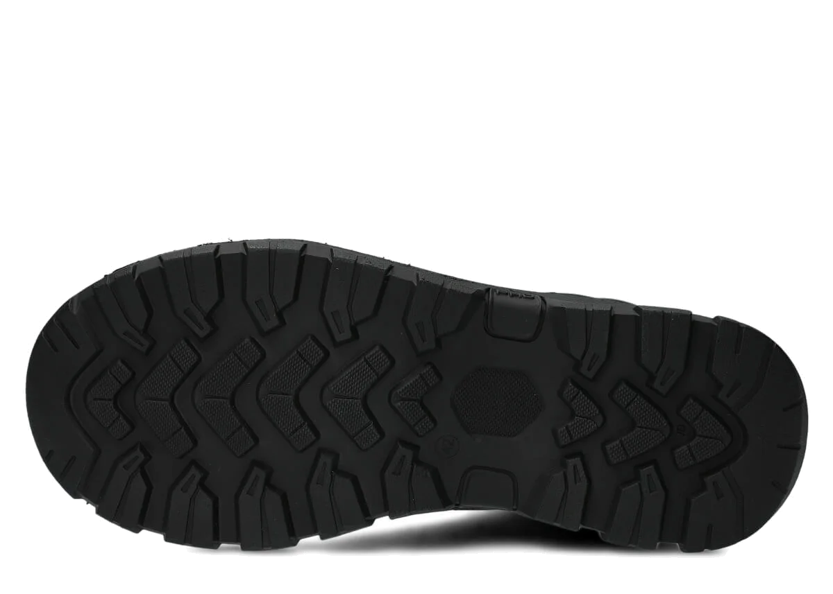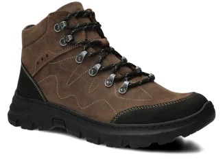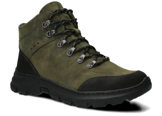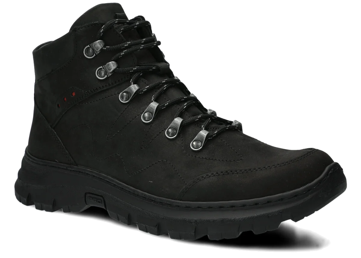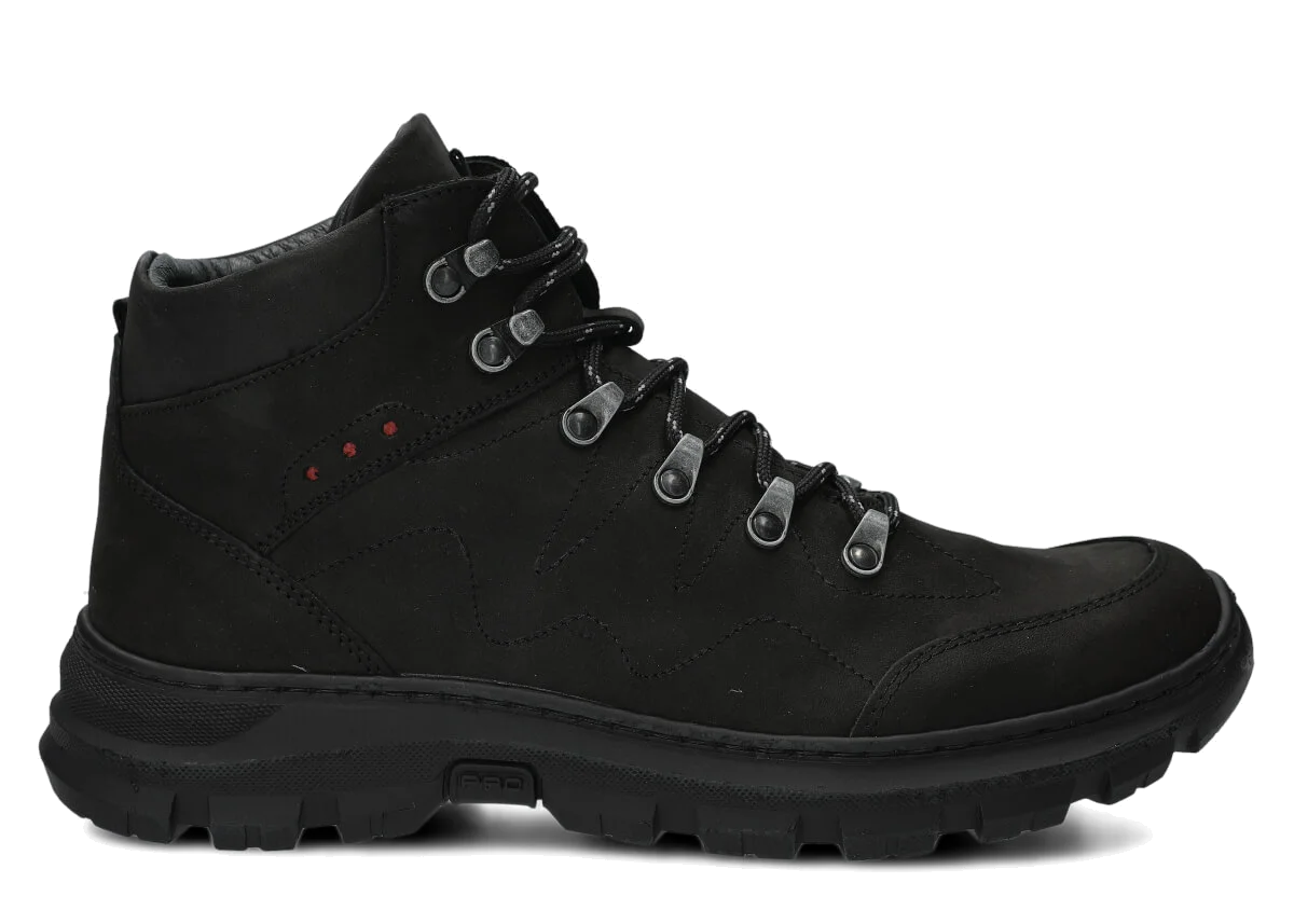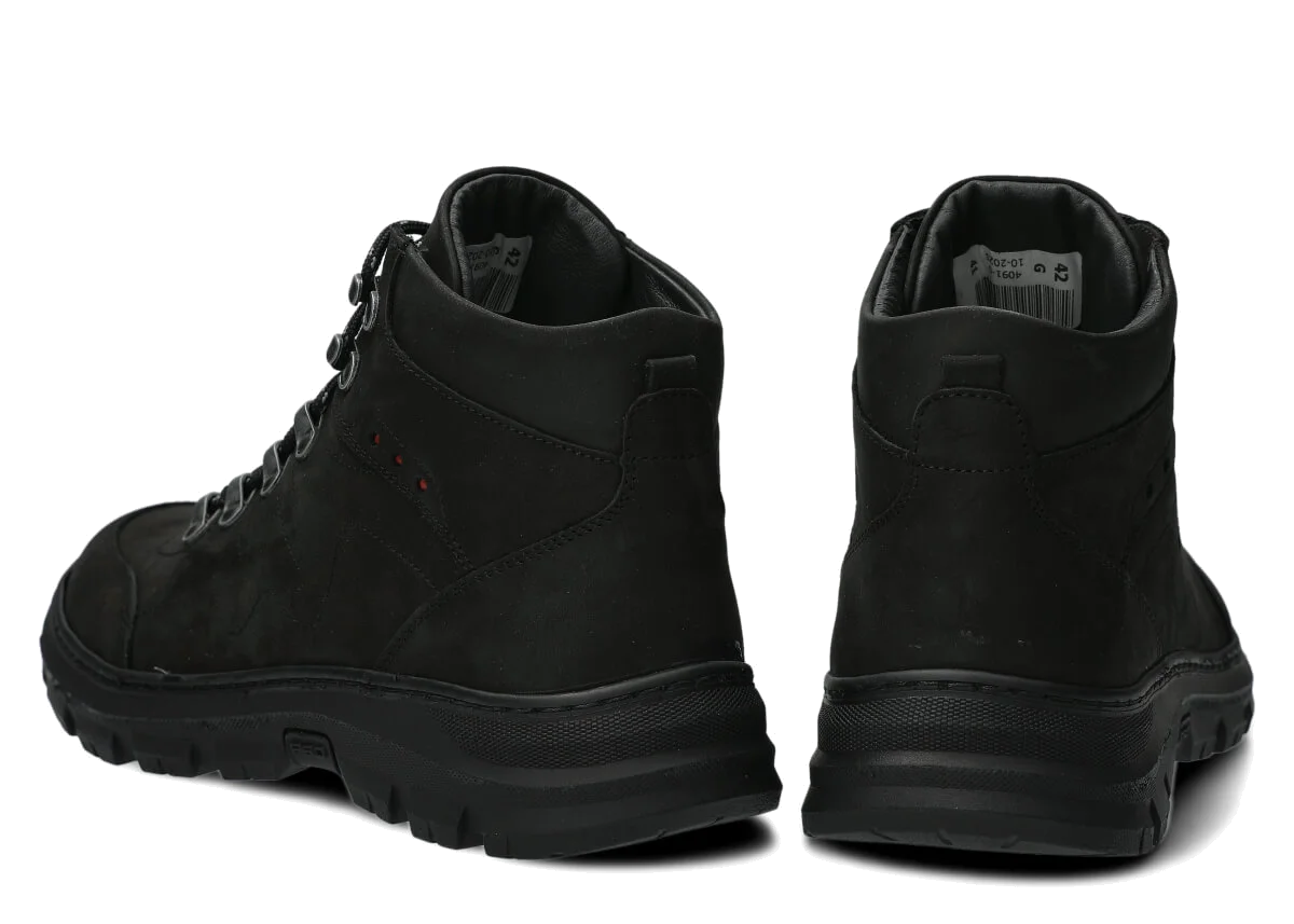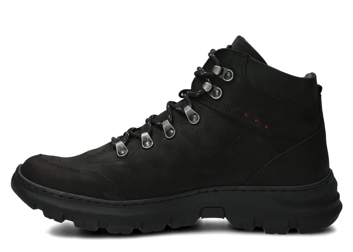 Trekové boty pánské kožené Nagaba 4091 černá crazy jsou mistrovským dílem řemeslné práce – ručně vyrobené v Polsku z odolné přírodní kůže typu crazy. Obuv nad kotník s volitelným zateplením (filc nebo kůže) a protiskluzovou podrážkou TR-termokaučuk – ideální na podzim, zimu a jaro. Dominantní černá barva s černými akcenty na špičce a patě, černé tkaničky a černá podrážka vytvářejí moderní, outdoorový vzhled.