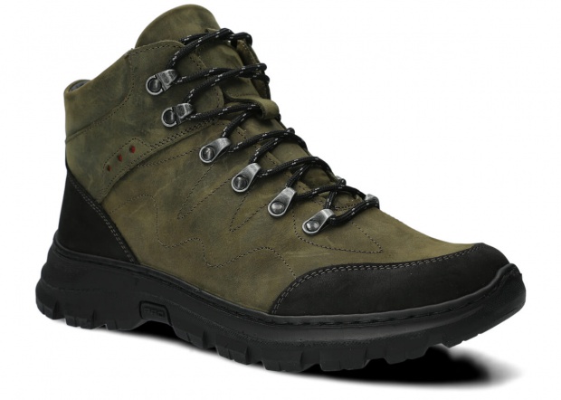 Trekové boty pánské kožené Nagaba 4091 olivová zelená crazy – odolné boty nad kotník na podzim, zimu a jaro