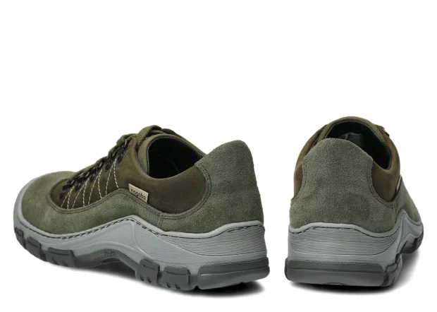 Campari - nubuková kůže, lehce zpevněná. S vzorem drobného hrášku. Barvy jednotné, nezmění se při zpracování. Kůže je velmi univerzální, používá se téměř pro každý typ obuvi.