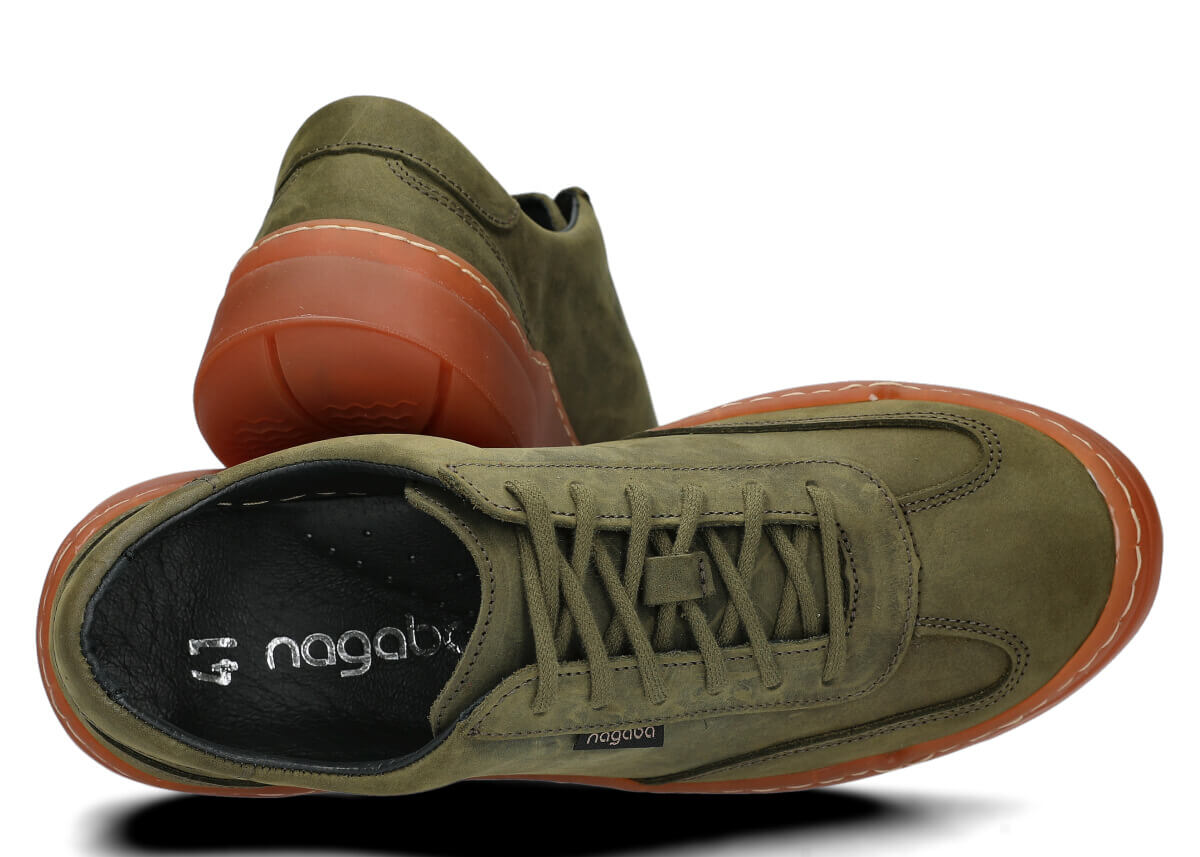 Pánské polobotky NAGABA 467 olivová zelená crazy kožené
