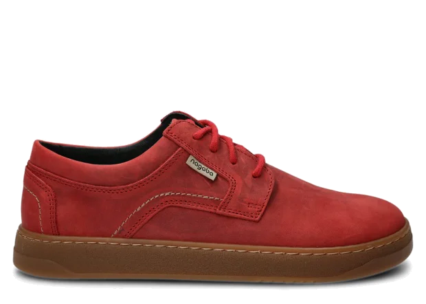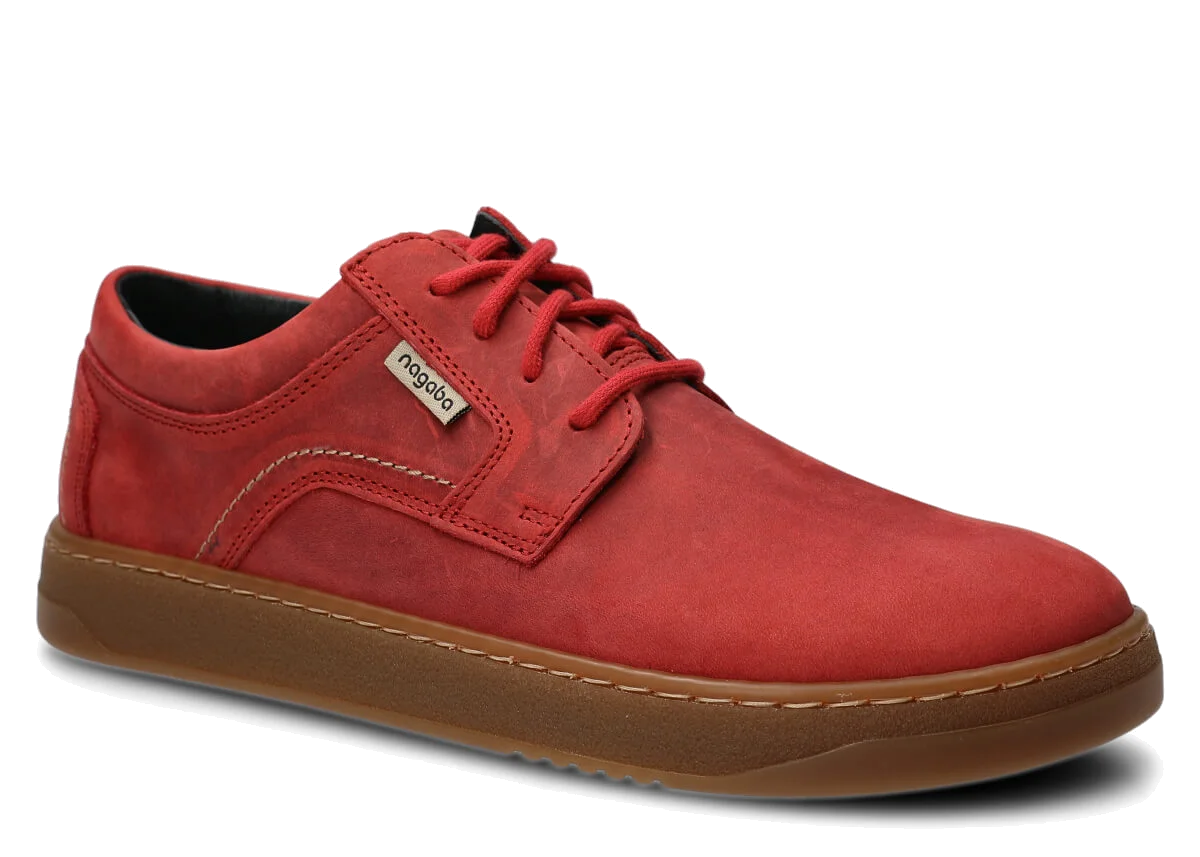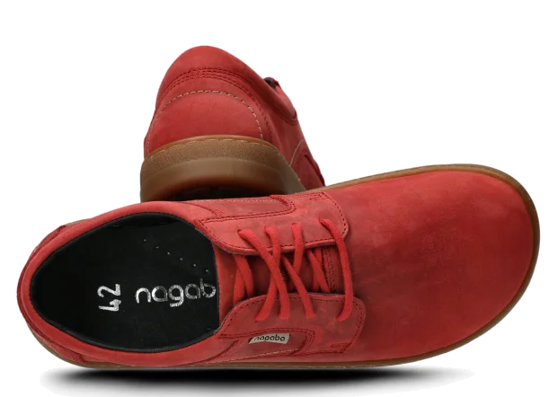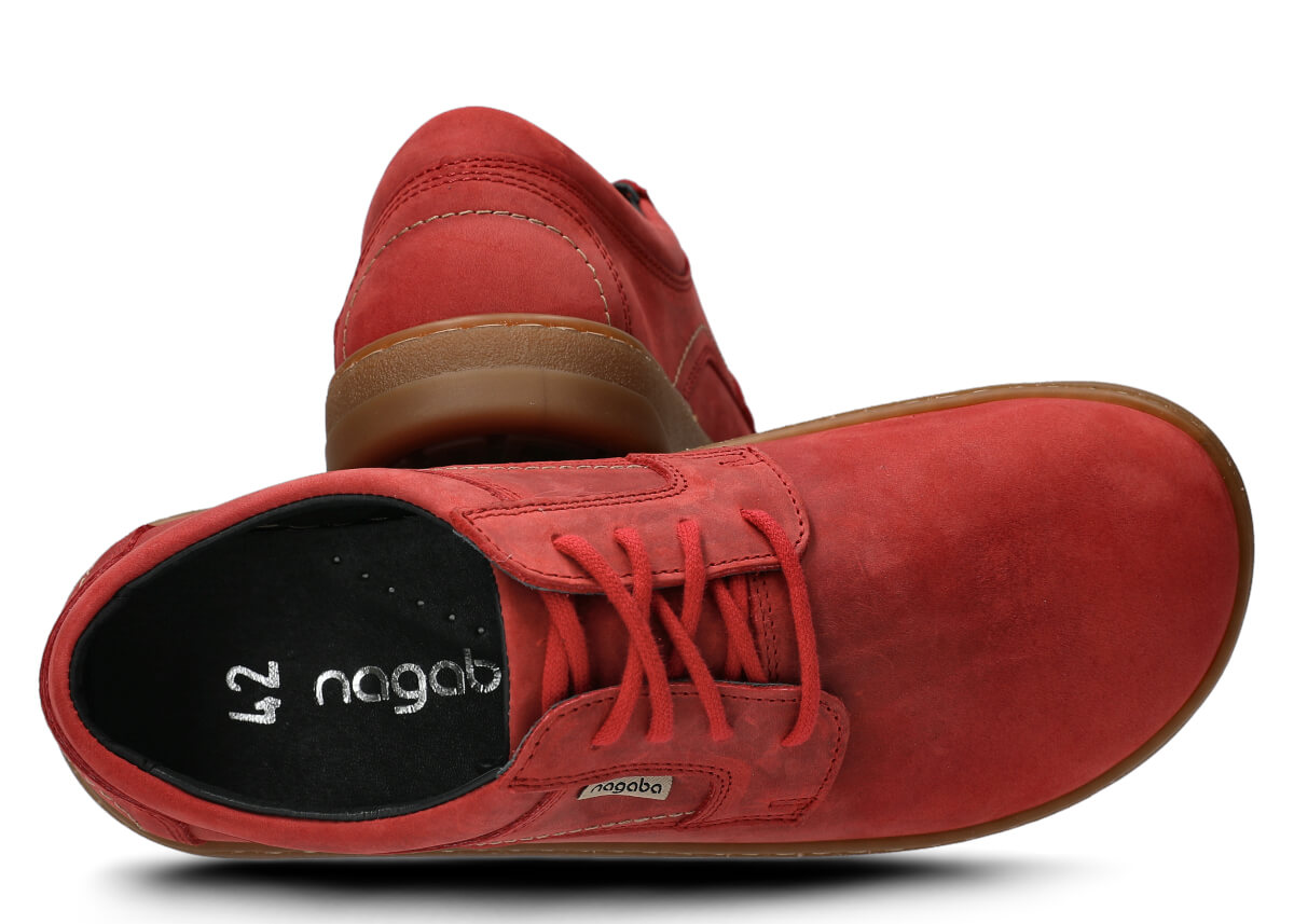 Polobotky Nagaba 476 v červená barvě se vyznačují svrškem, podšívkou a výstelkou z přírodní kůže, což zajišťuje vynikající prodyšnost a pohodlí i při dlouhodobém nošení. Odolná podrážka z TR-termokaučuku nejenže garantuje dlouhou životnost, ale také vynikající přilnavost na různých površích díky protiskluzové konstrukci. Podrážka je lepená a pečlivě přešitá, což zvyšuje odolnost obuvi vůči každodennímu nošení. Inspirovány barefoot obuví, polobotky podporují přirozený pohyb chodidla a nabízejí bezkonkurenční pohodlí a zdraví.