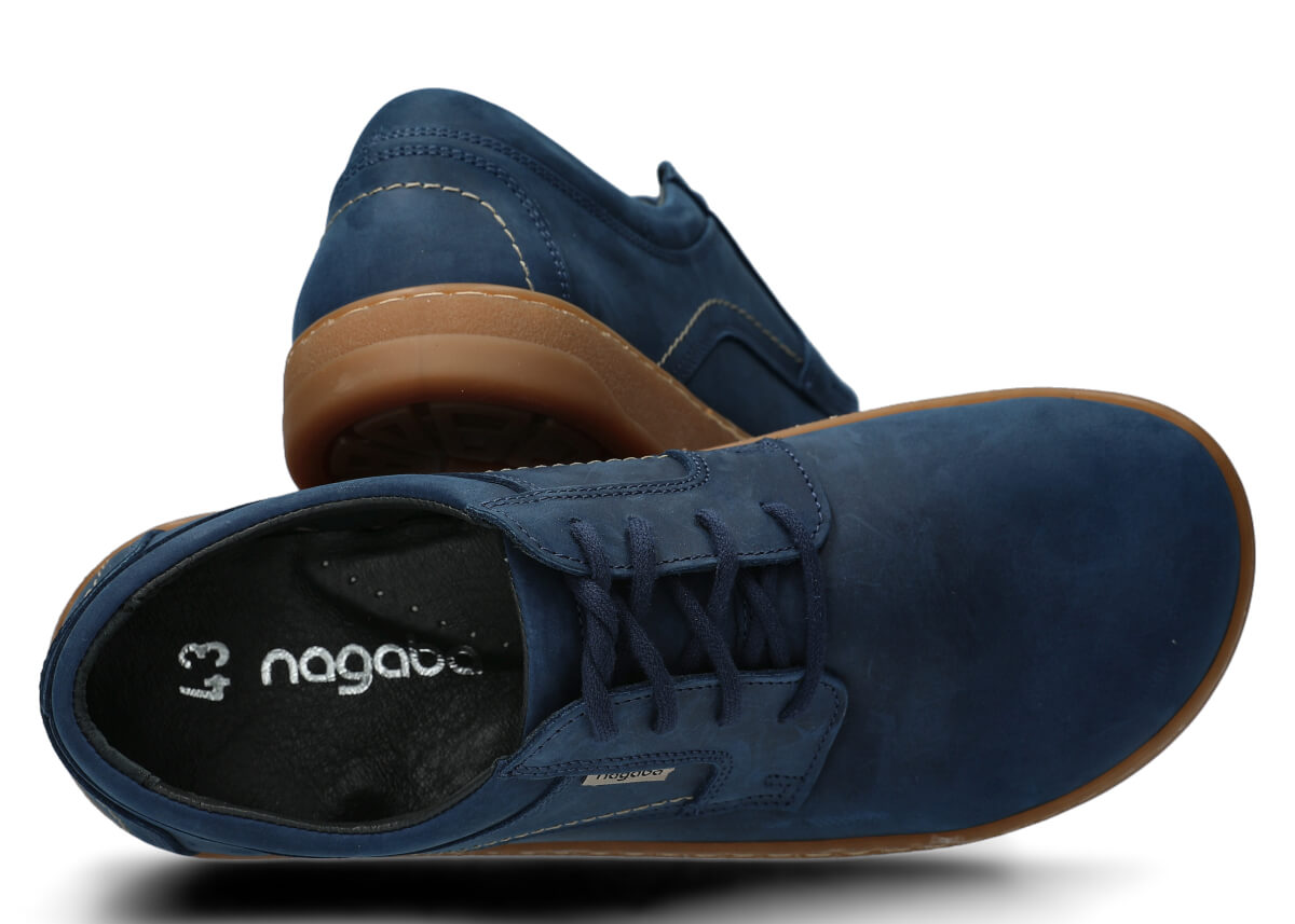 Polobotky Nagaba 476 v tmavě modrá barvě se vyznačují svrškem, podšívkou a výstelkou z přírodní kůže, což zajišťuje vynikající prodyšnost a pohodlí i při dlouhodobém nošení. Odolná podrážka z TR-termokaučuku nejenže garantuje dlouhou životnost, ale také vynikající přilnavost na různých površích díky protiskluzové konstrukci. Podrážka je lepená a pečlivě přešitá, což zvyšuje odolnost obuvi vůči každodennímu nošení. Inspirovány barefoot obuví, polobotky podporují přirozený pohyb chodidla a nabízejí bezkonkurenční pohodlí a zdraví.