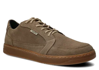 Svršek z přírodní semišové kůže, která vzniká z dolní vrstvy kůže – štípenky – a po obroušení tvoří charakteristický, jemný vlas. Stejně jako u každé drsné kůže, přejetí prstem po povrchu zanechává viditelnou, tmavší stopu. Tento materiál je na dotek měkký, má matný povrch a snadno absorbuje vlhkost, pod jejímž vlivem tmavne. Vnitřek z přírodní vepřové kůže zaručuje hygienu a ventilaci. TR-termokaučuková podrážka – lepená a šitá po celém obvodu – je protiskluzová a plochá po celé délce.