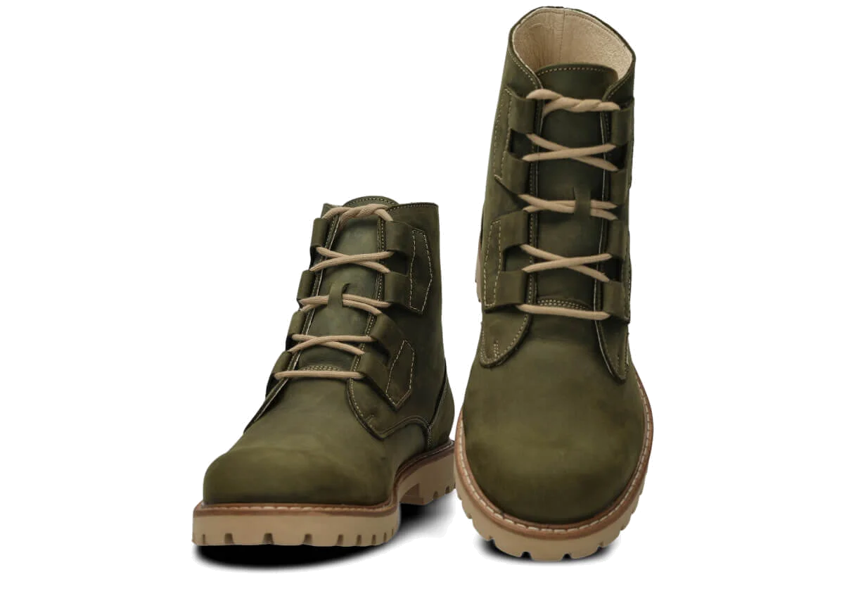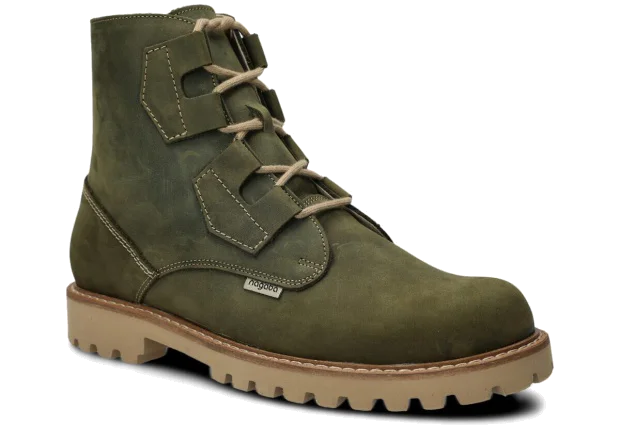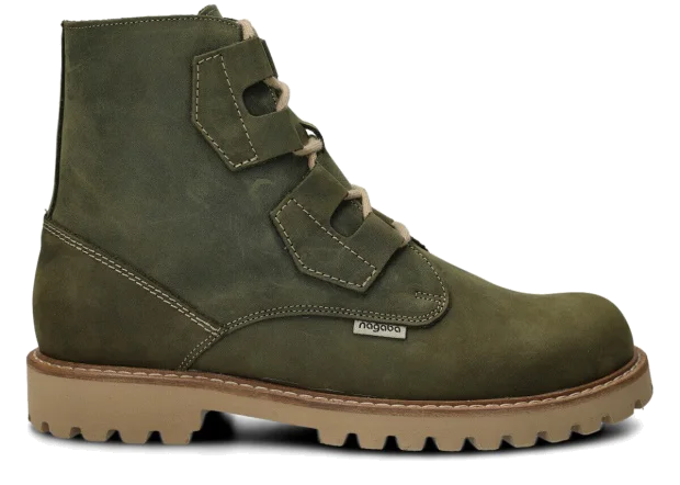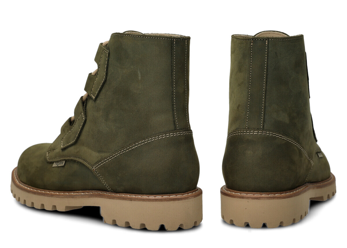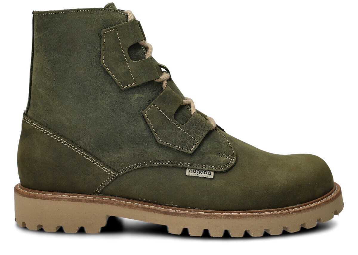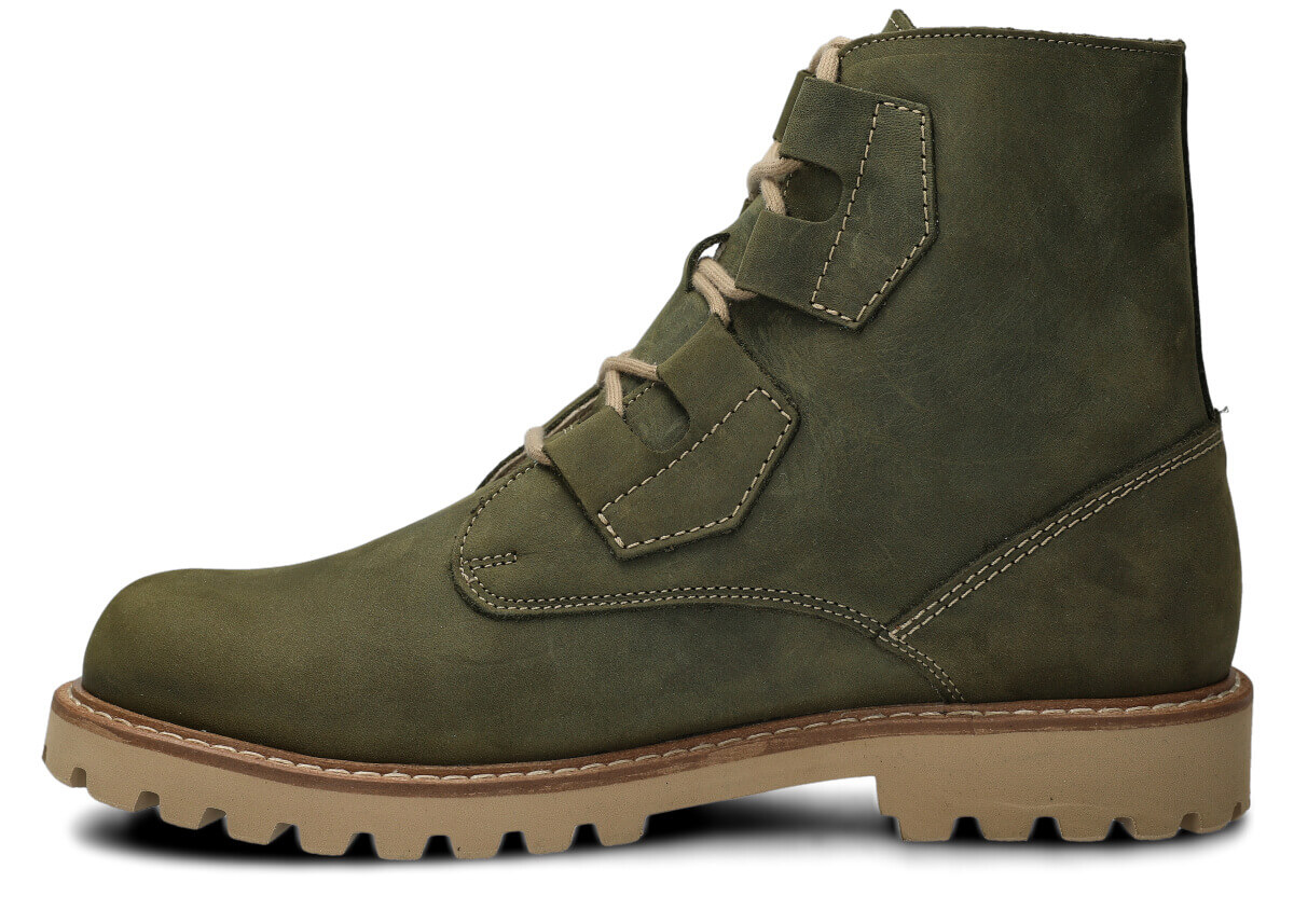 Pánské trapperské boty NAGABA 488/1 v odstínu olivová zelená z crazy kůže se vyznačují pečlivým dokončením v moderním stylu a univerzálností při kombinování s ostatním oblečením.