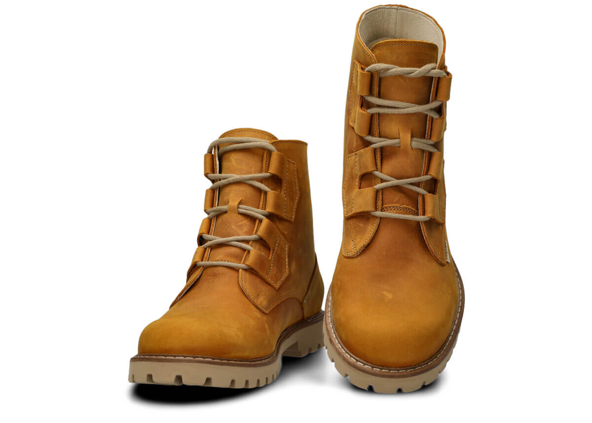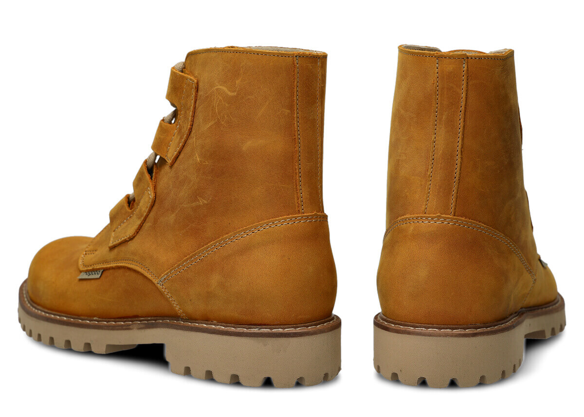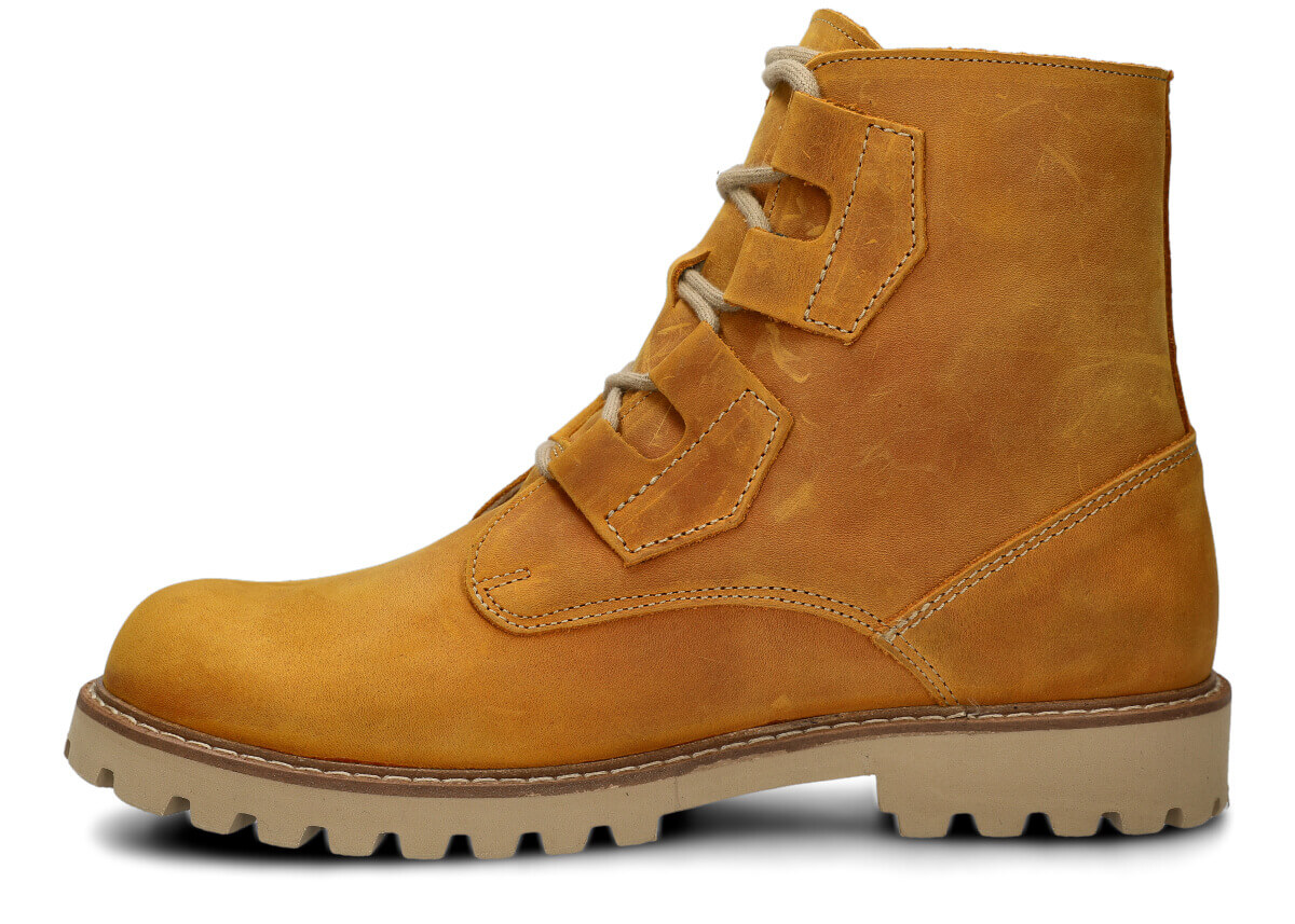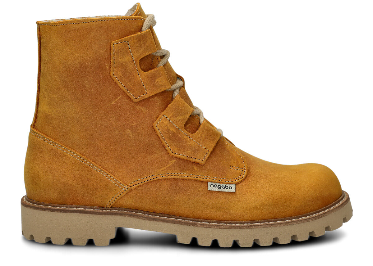 Pánské trapperské boty NAGABA 488/1 v odstínu žlutá z crazy kůže se vyznačují pečlivým dokončením v moderním stylu a univerzálností při kombinování s ostatním oblečením.